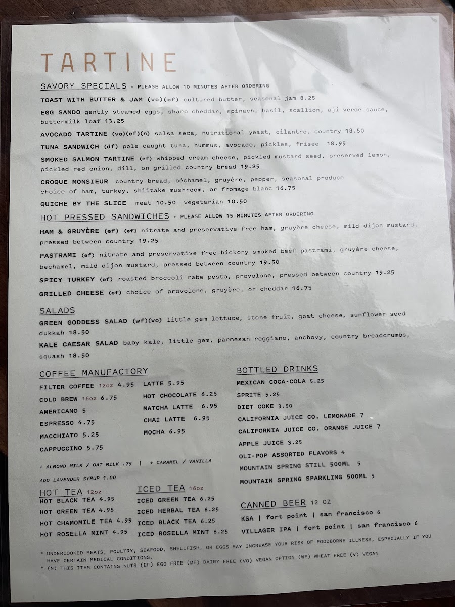 Reviews from satisfied customers paint a vivid picture of Tartine Bakery’s offerings: 'Soooo yummy pastries and morning sandwiches,' praises Oznur Basak, while Mari-Kathleen L mentions the almond croissant as 'perfect and unlike any I have had before.' With such high acknowledgment of quality and taste, you can trust that whatever you select will be crafted with both passion and expertise.